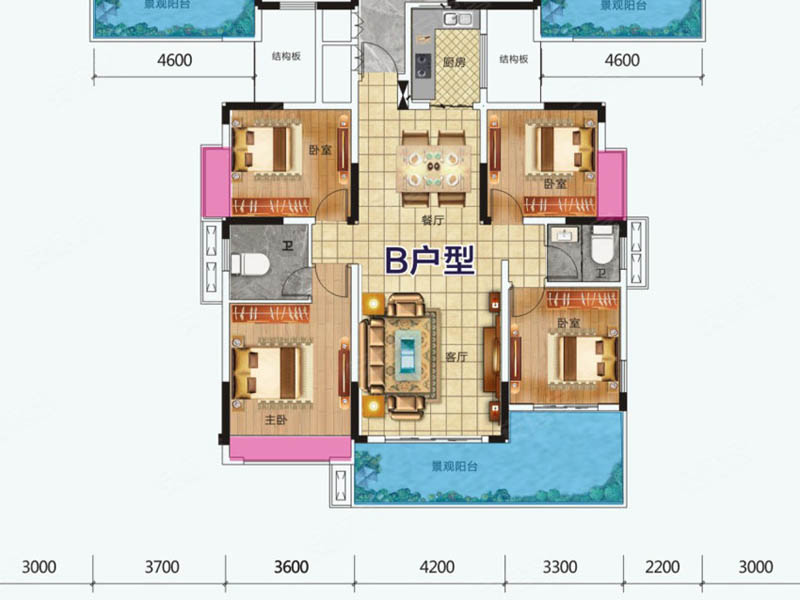 临武龙山书居1栋B户型_户型图鉴赏-郴州楼盘网