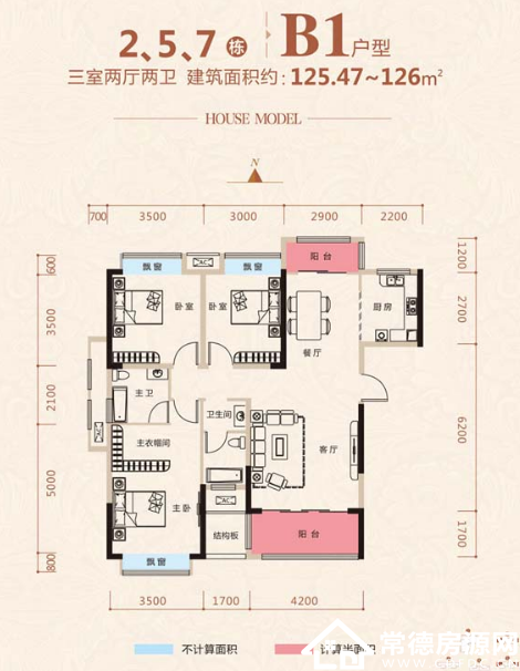 户型:3室2厅(125.00㎡) 参考总价:75万/套